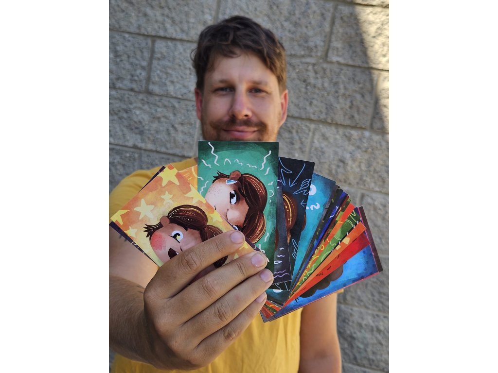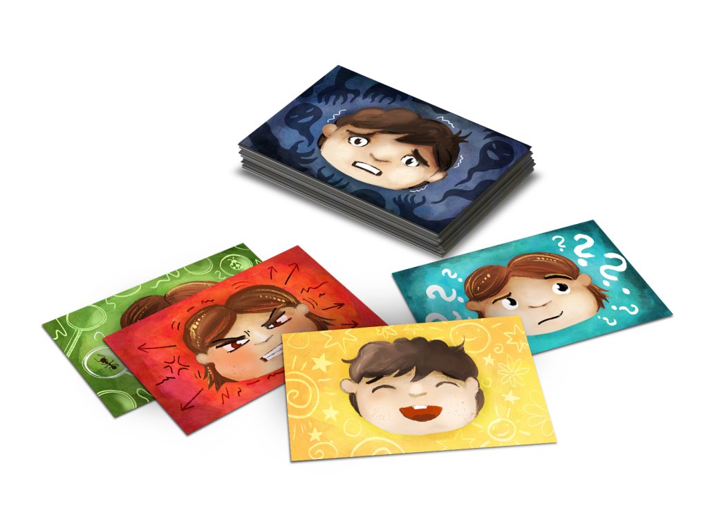 25 krásně ilustrovaných karet s různými emocemi (např. radost, smutek, vztek, nadšení…), bonusová karta s QR odkazem na metodiku a praktické využití. Ekologické balení v bavlněném pytlíku.